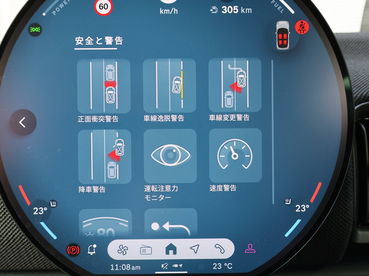 オートマチックハイビーム(AHB) 対向車のヘッドライトの明かりを感知しハイビームを自動的にロービームに切り替え、対向車が通り過ぎるとハイビームに戻す装置が装備されています。