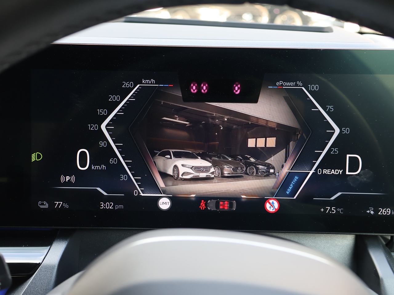 オートマチックハイビーム(AHB) 対向車のヘッドライトの明かりを感知しハイビームを自動的にロービームに切り替え、対向車が通り過ぎるとハイビームに戻す装置が装備されています。